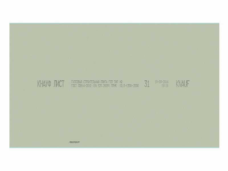 Гипсокартон Knauf 12.5x1200x2000 влагостойкий